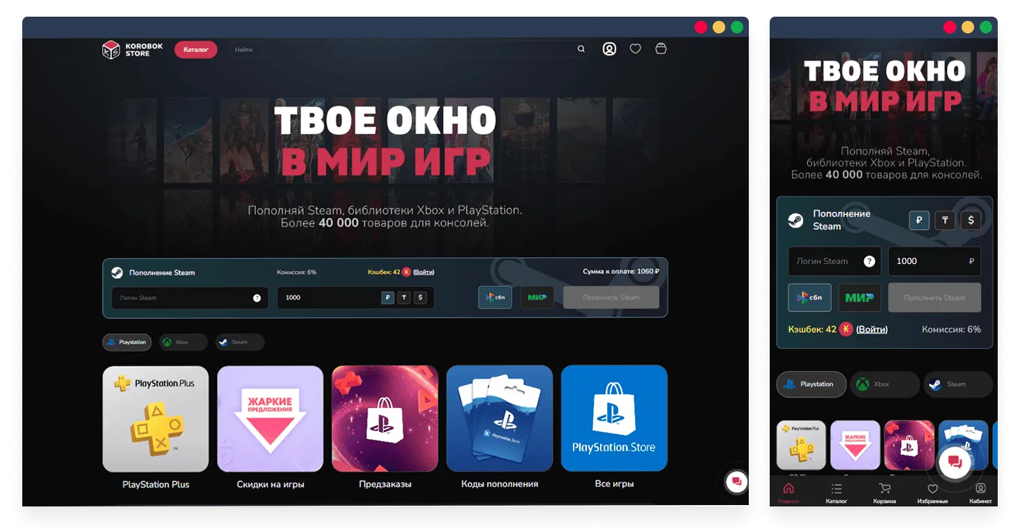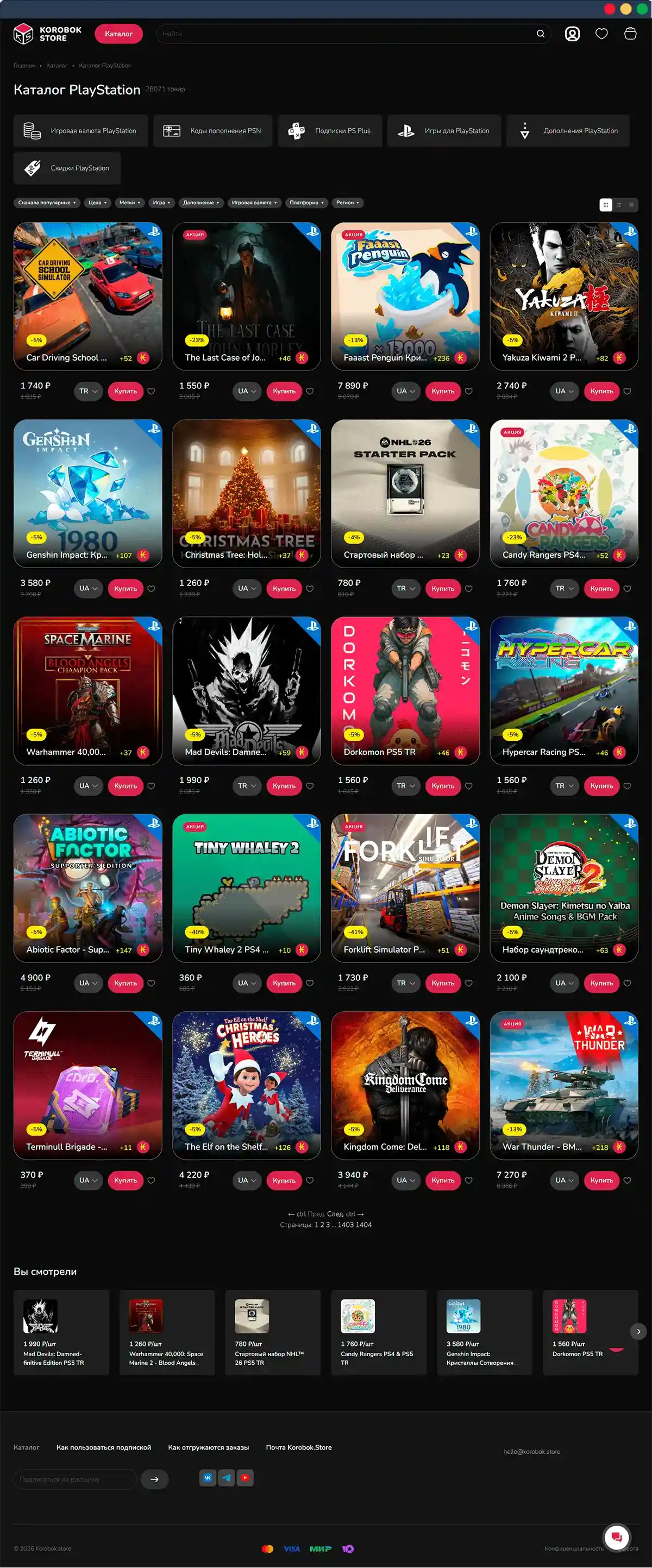 Требовалось провести комплексную оптимизацию кода и ускорить загрузку сайта, внедрить умный поиск и доработать фильтры для быстрого подбора игр по платформам и регионам. Также необходимо было настроить безопасность, оптимизировать работу с базой данных каталога и обеспечить регулярную техническую поддержку для стабильной работы магазина.