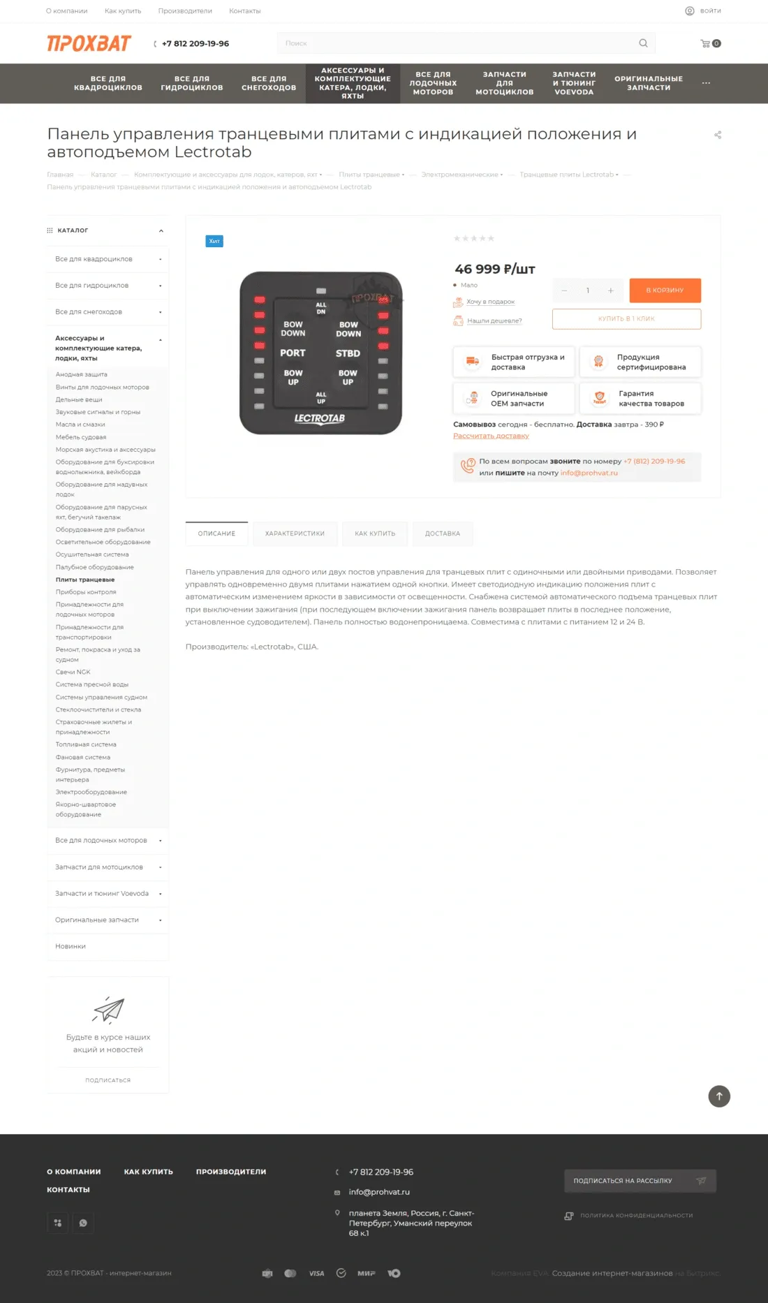 Интернет-магазин Прохват специализируется на продаже фирменных запчастей, масел и аксессуаров для квадроциклов, мотоциклов, снегоходов и прочей техники для активного отдыха. Компания сотрудничает с ведущими отечественными и зарубежными производителями Arctic Cat, BRP, Yamaha, Polaris, Kawasaki. Предлагает широкий ассортимент запчастей в наличии и осуществляет поставки под заказ, является официальным дилером продукции Voevoda.