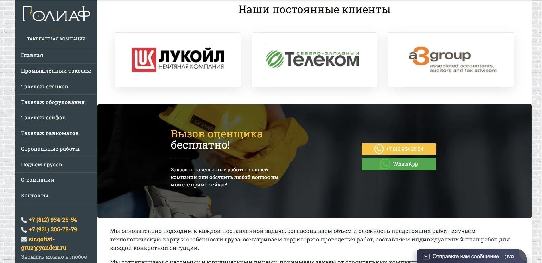 Сайт компании, занимающейся Такелажными работами